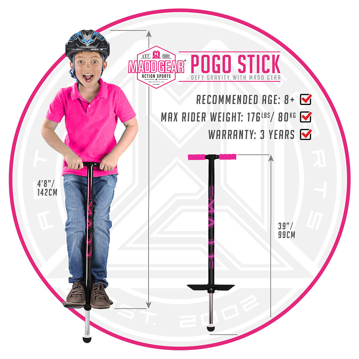 The Madd Gear Pogo Stick provides hours of fun exercise and outdoor play! Get the kids out of the house and active on the Madd Gear Pogo Stick - Featuring super durable construction and safe non-slip foot pegs and handlebar grips!