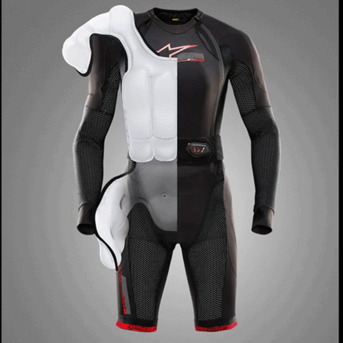 Tech-Air® 10 can be worn under any Alpinestars Tech-Air® Ready or Tech-Air® Compatible leather suits, or any third-party leather suit with 4 cm of space around the circumference of the rider’s chest and 2 cm of room around the circumference of the rider’s hips. The additional space for the chest and hips is necessary to be able to accommodate the inflation of the airbag, in the event of a crash.