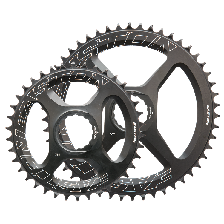 To connect the outer ring to the Cinch interface an asymmetric four arm shape allowing for larger stiffer arms in the power zones of the pedal stoke and an overall reduction of weight with thinner arms in pedalling zones that experience less torque. All Easton rings feature the Cinch Direct Mount System making a swap between ring sizes or even between double ring configurations a fast and simple procedure. Using the Cinch DM System also provides a significant weight savings by eliminating the material overlap and extra bolt hardware that is required for a traditional spider with chainring configuration. The rings have 47mm chainline with the Easton 129mm spindle, this is the optimal chainline for 135/142mm rear hub spacing which covers all road/CX disc bikes. The 47mm Chainline gives full access to all gears on the rear cassette with efficient power transfer and minimal running noise.