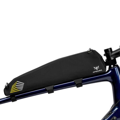 Constructed from an ultralight laminate developed for Apidura, this bag fastens securely to the top tube, stem and seat post and works alongside a wide range of frame bags. An adjustable internal divider and the fully waterproof two-way zipper make it easy to arrange and access belongings, while keeping everything dry.