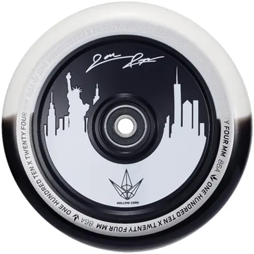 The Envy Jon Reyes Signature Scooter Wheel 110mm Black/White is designed for performance and style, featuring a 110mm x 24mm wide 86A size for optimal grip and durability. Its two-tone polyurethane construction showcases Jon's custom NYC graphic, adding a unique flair to your ride. Equipped with high-quality ABEC 9 bearings, this wheel ensures a smooth and fast experience. The classic black and white colorway complements any scooter setup, making it a versatile choice for riders seeking both functionality and aesthetics.