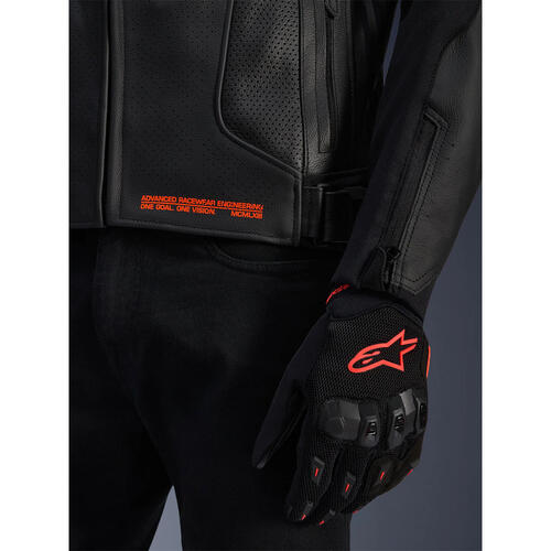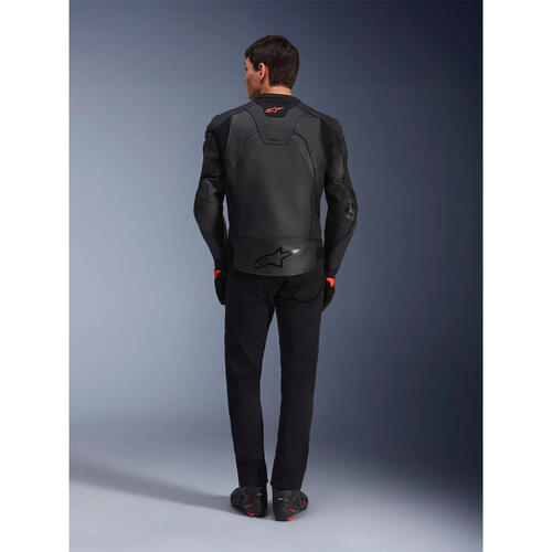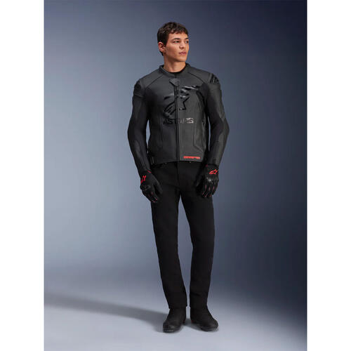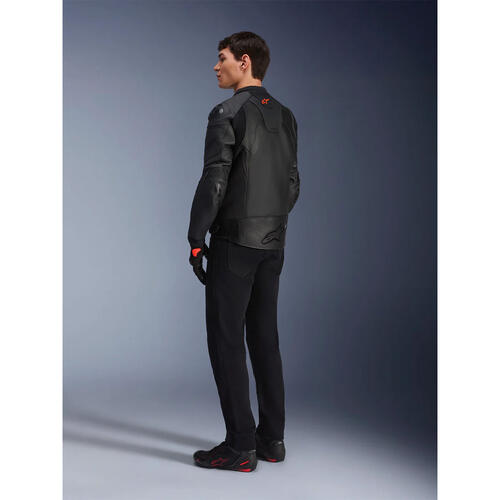 Alpinestars composite stretch technology, A-CS® Plus, stretch panels on the torso for exceptional breathability, comfort, and freedom of movement, as well as delivering a lighter weight and a lower profile than a traditional leather accordion panel (the A-CS® Plus panels are about 9% lighter than leather panels). Another key advantage of using A-CS® Plus is its superior stretch performance; A-CS® Plus has about 30% elongation and offers an increase in tear resistance of 300% compared to HRSF (Hyper Resistant Stretch Fiber), and an increase in cut resistance by 600% versus leather.