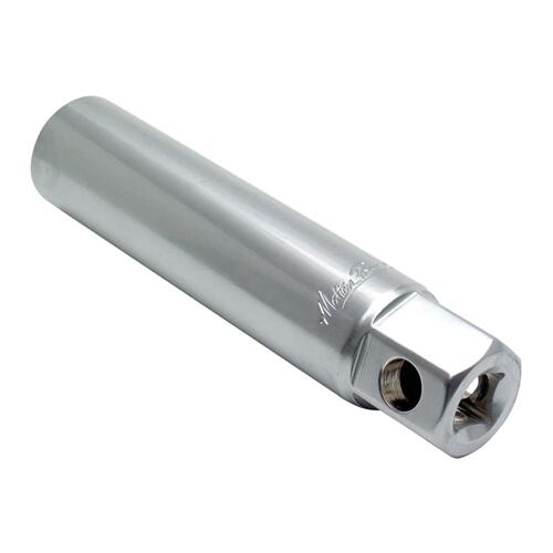 - Socket can be driven with various tools including the Motion Pro spark plug ratchet wrench, 3/8" ratchet, 13/16" wrench, tool kit bar, or a Phillips screwdriver placed through the 8.5mm hole at the top of the socket