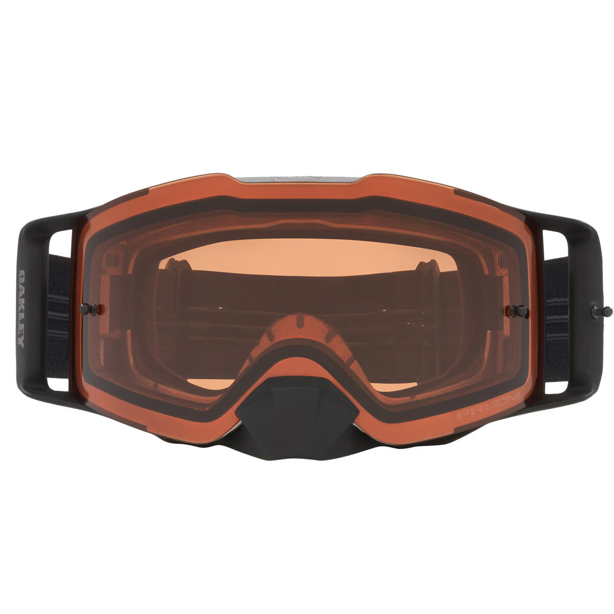 Oakley's High Impact line of goggles includes the Front Line™ MX. With a large to medium sized fit, Front Line™ MX is optimized for a wide variety of faces and is engineered to fit perfectly with most helmets. Designed with Oakley's Ridgelock Technology, changing lenses is quick and easy while still allowing for a complete lens seal to prevent harsh conditions from penetrating into your goggle. Discreet frame notches at temples provide compatibility with most prescription eyewear.