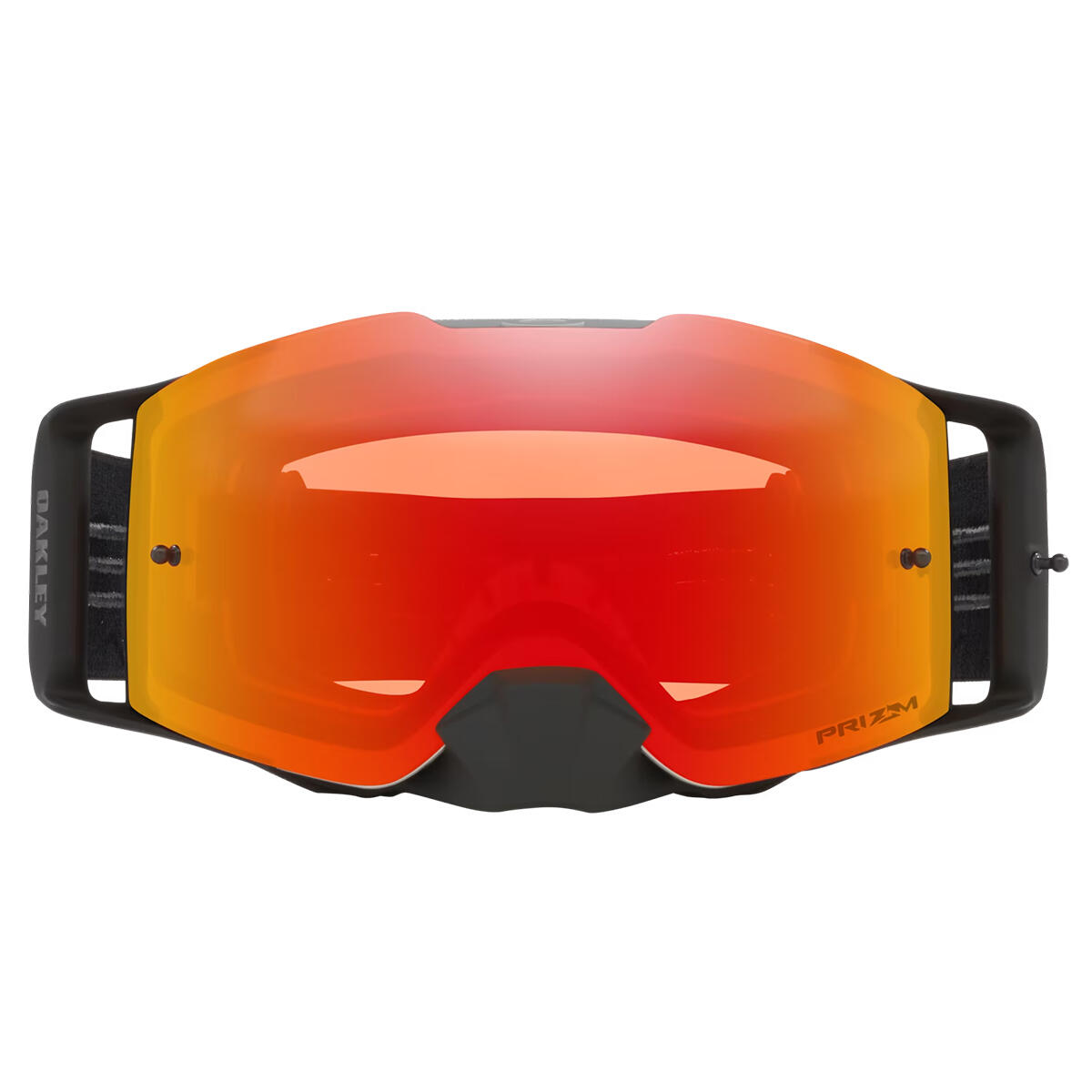 Oakley's High Impact line of goggles includes the Front Line™ MX. With a large to medium sized fit, Front Line™ MX is optimized for a wide variety of faces and is engineered to fit perfectly with most helmets. Designed with Oakley's Ridgelock Technology, changing lenses is quick and easy while still allowing for a complete lens seal to prevent harsh conditions from penetrating into your goggle. Discreet frame notches at temples provide compatibility with most prescription eyewear.