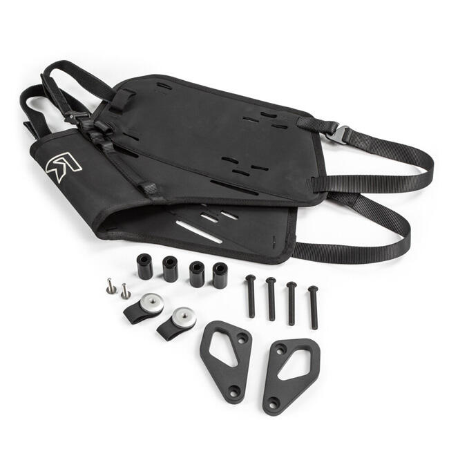 The KOSBA-B OS-BASE is an 'over-the-seat harness' for mounting OS-6, OS-12, or OS-18 ADVENTURE PACKS as soft panniers. No additional frames are required, as this system provides a super-tough, lightweight carrying solution for the KTM 790 or 890 with no permanent bodywork alterations to the bike.