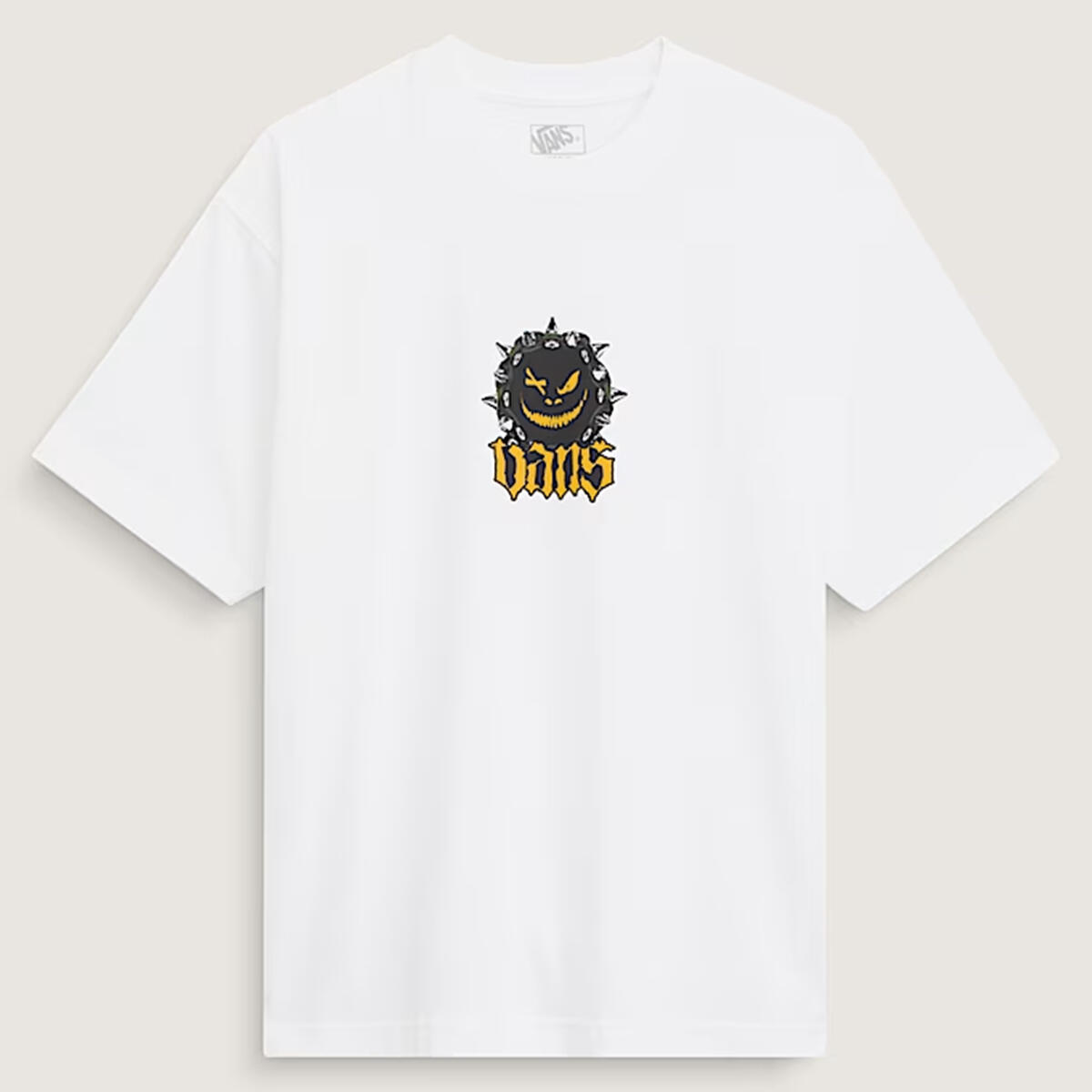 Give a little grin in the Happy Spike T-Shirt, a spooky season special with long-lasting screen print artwork of a ghoulish pumpkin atop a scripted Vans logo. Short sleeves make for casual, everyday wear, even after Halloween's over.