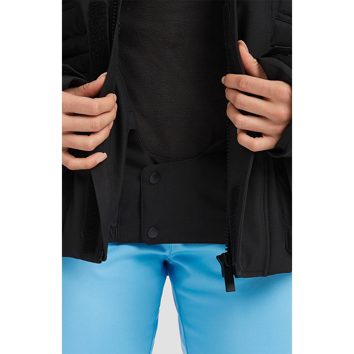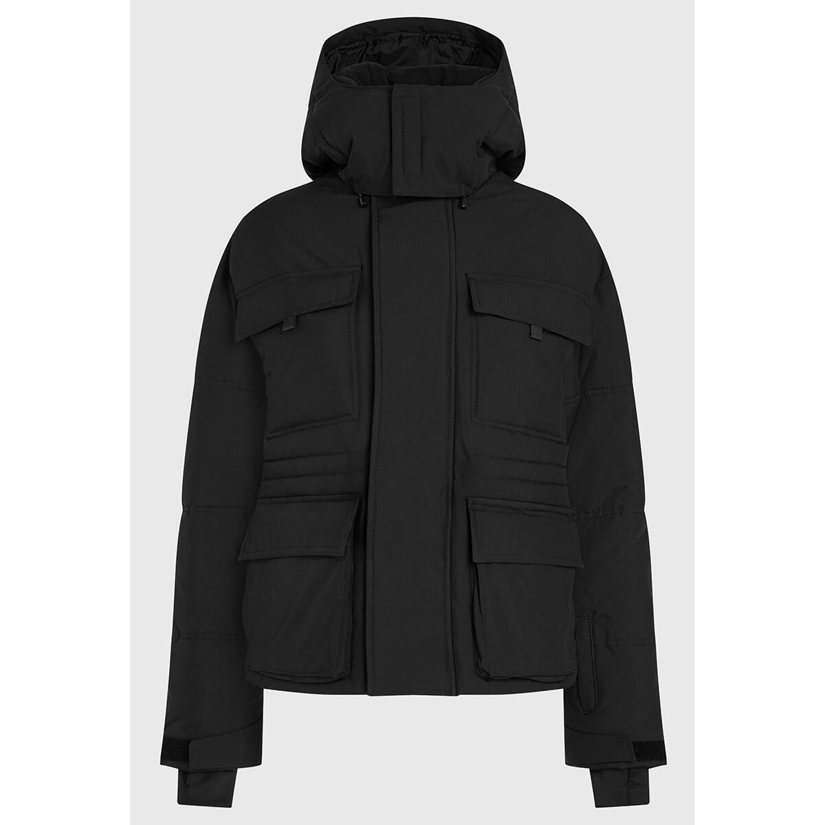 - Liftpass Pocket, Goggle Pocket, Secure Zip Hand Pockets, Flap Chest Pockets with Velcro, Flap Hand Pockets with Velcro,