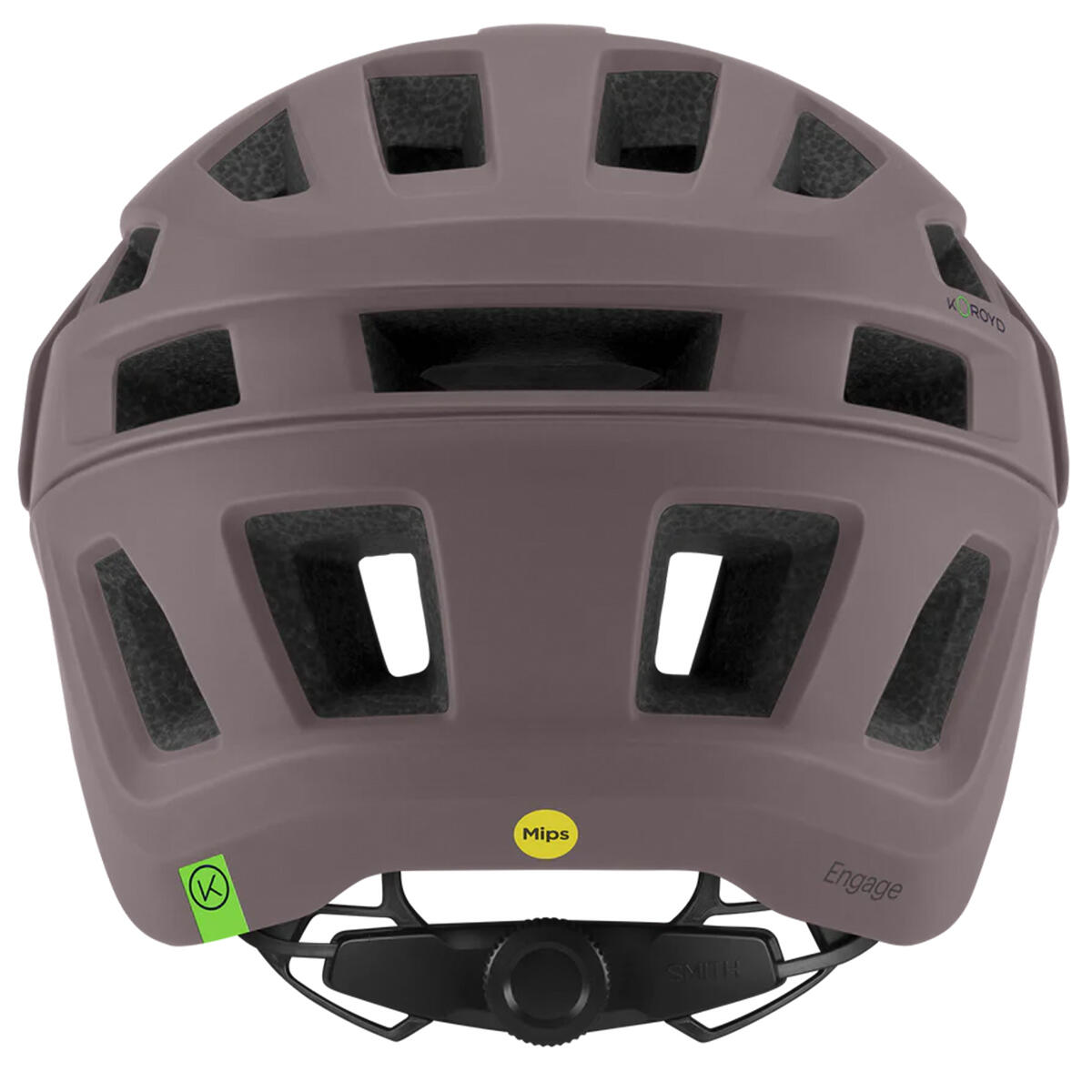 Big berms, rock gardens or flowy rollers. No matter the trail, get after it with confidence in the Smith Engage mountain bike helmet. Zonal KOROYD™ complements Mips® for energy-absorbing impact protection in the event of a crash. A dial adjustable fit and extended back coverage provide a locked-in feel. On hot days or exposed climbs, 20 fixed vents and our AirEvac ventilation system keep you cool and comfortable. Channels on the front make it easy to stow eyewear and a two-position visor rotates up for on-the-go goggle storage.
