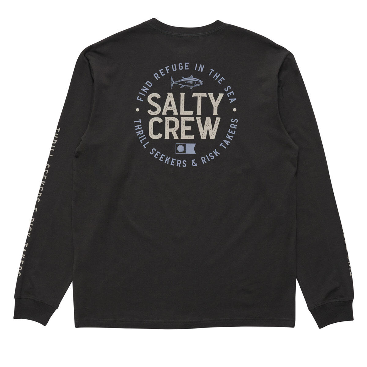 Skipper Classic LS Tee in Vintage Black is made from ring spun Cotton Jersey, 160gsm in weight. It features a Salty Crew clamp label at hem edge. Finished with screen printed front, back & sleeve prints.