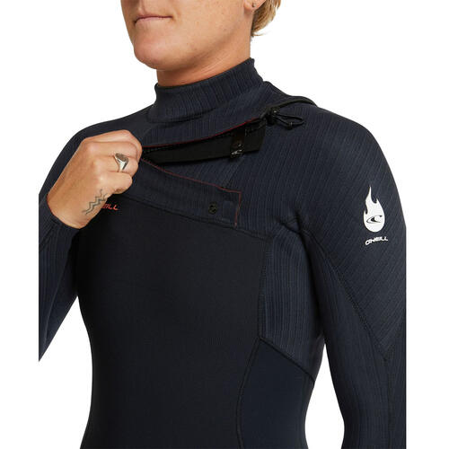 Unrivalled Flexibility & Warmth. The HyperFire steamer (formally known as HyperFreak Fire) incorporates stretch and warmth properties in one wetsuit. Featuring TB4X graphene lined high stretch arms and entry for paddling freedom easy in and out. The internal of HyperFire also has TB4 Firewall liner which keeps you drier and warmer. Hang it up at the end of the surf and the Firewall liner is touch dry in 30 minutes. Sealed seams with internal Fluid tape provide longer lasting warm wetsuit for some of the coldest conditions. The HyperFire chest zip model features our most popular FUZE chest zip system. Our chest zip entry systems features an anti flush barrier with drain holes to offer an effective seal to keep the warmth in, whilst also allowing easy entry and exit from the suit. Utilising recycled oyster shells, car tyres and plastics, solvent-free lamination, dope-dyed yarn, and limestone neoprene, our Hyper Series steamers have taken a giant step towards building a more sustainable future and protecting our oceans.
