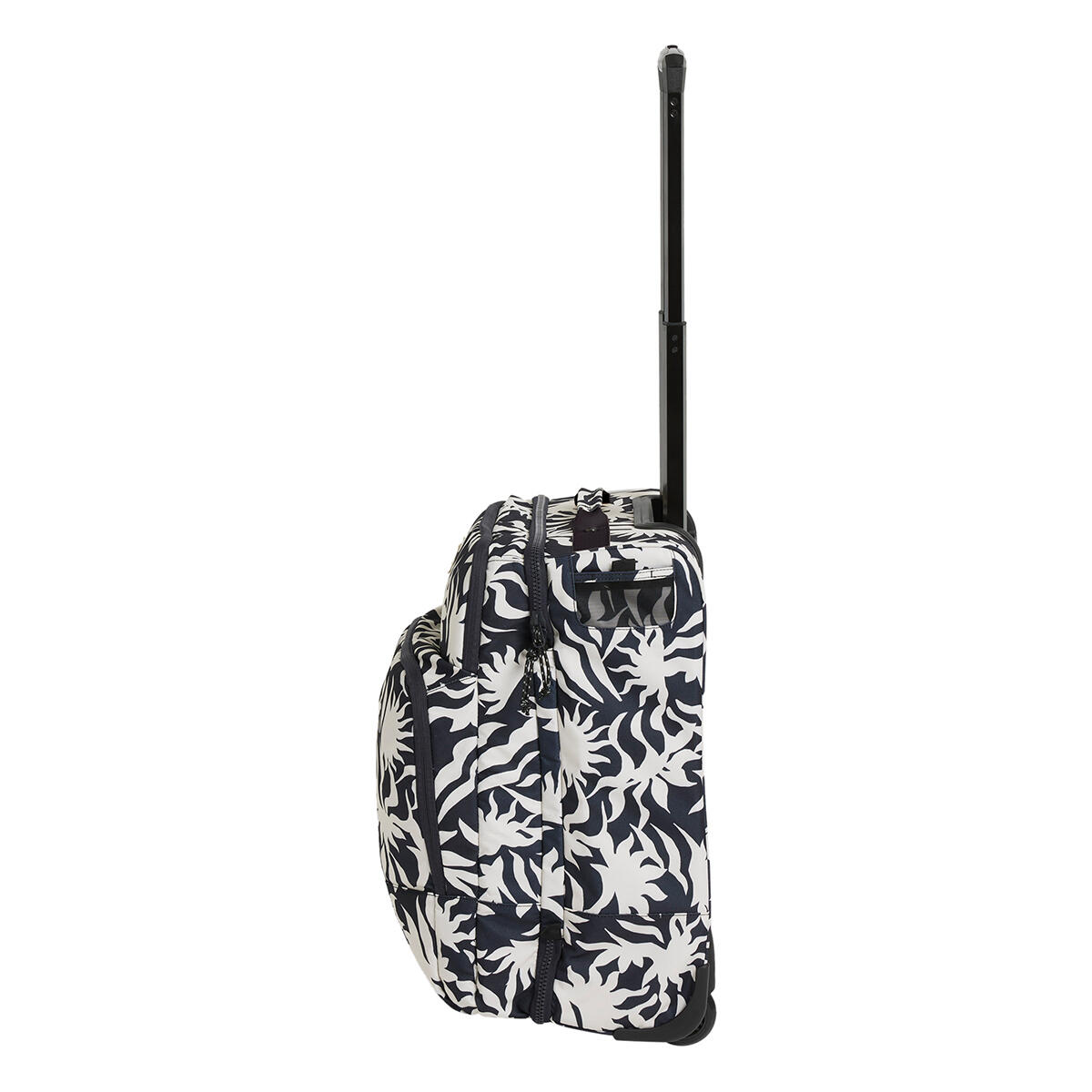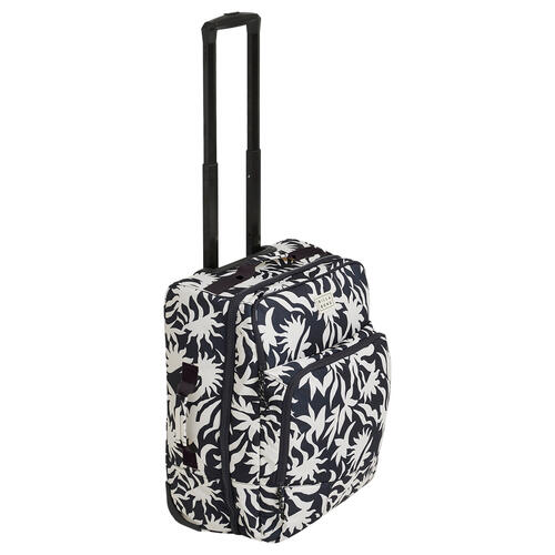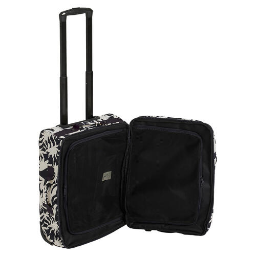 - Compartments: Large external pockets, sandwich construction with mesh dividers, telescopic handle, lockable zipper pulls, molder EVA base, axle guard, compression straps and durable trolley system