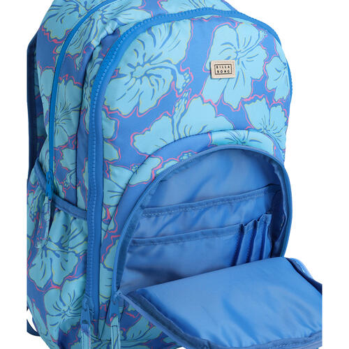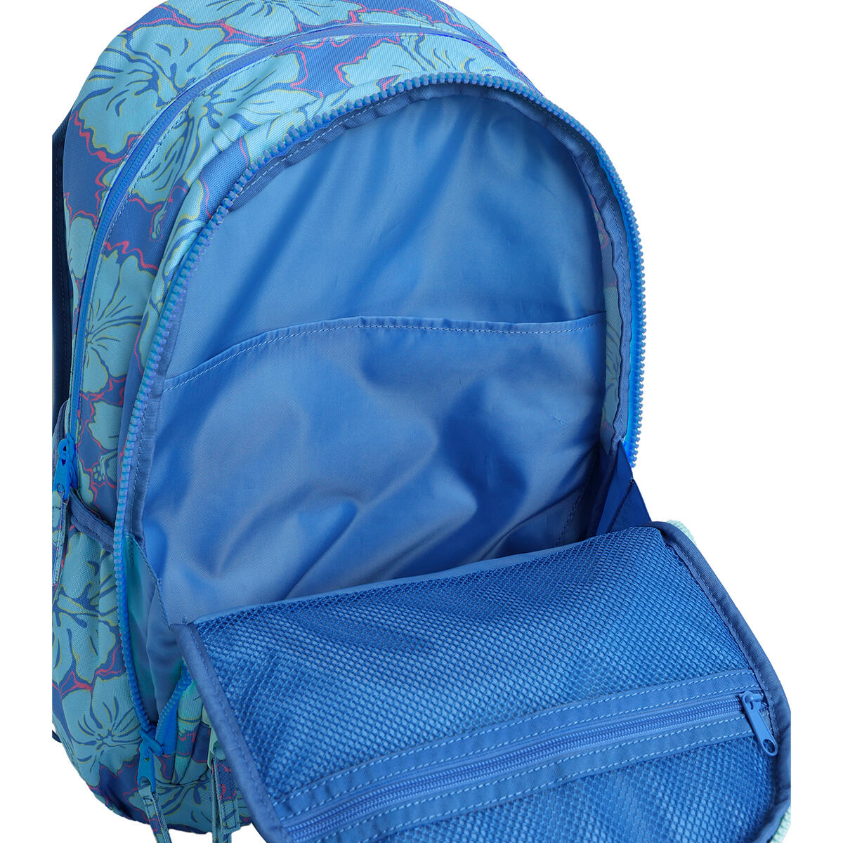 - Compartments:Interior laptop sleeve, elasticated side water bottle pockets, interior pencil slots, zippered mesh pockets, several compartment pocket, vertical zippered front pocket