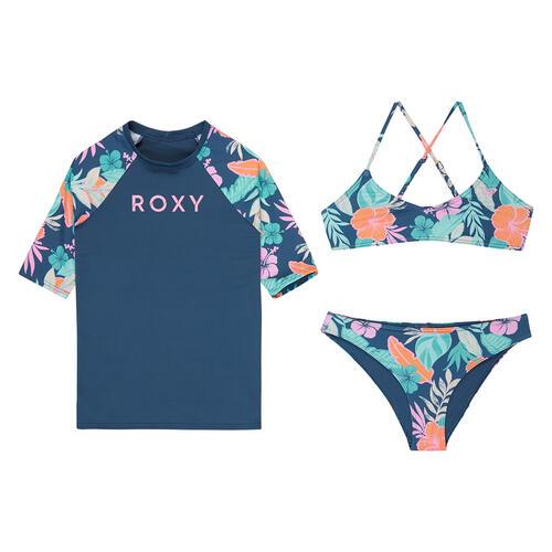 Roxy Girls Active Floral Swim Set Pack Vintage Indigo Tropical Advent