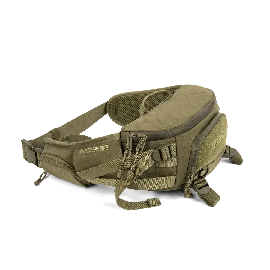 Molle ridden Mission EXP™ Hip Packs are overbuilt for maximum storage and comfort in the outdoors. Equipped with an internal pocket system, you can take what you need and compartmentalize with ease. Designed for your Grayl, our Expanse BottleDrop™ and BottleLock® storage systems offer you a multitude of options to carry any water bottle and essential gear. Velcro loop with a clip-in metal o-ring allows is an idyllic landing spot for grab-n-go G-Mod Velcro Accessory Pouches for quick and easy access to compact items. Constructed with 100% recycled nylon, stretch woven fabrics, YKK water-resistant zips, and premium hardware. Expandable by up to two liters when extra volume is needed by deploying the Expanse BottleDrop™ Pockets.