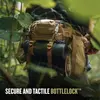 • Strap Management. Elastic keepers for waist belt and BottleLock® Tie-down system.