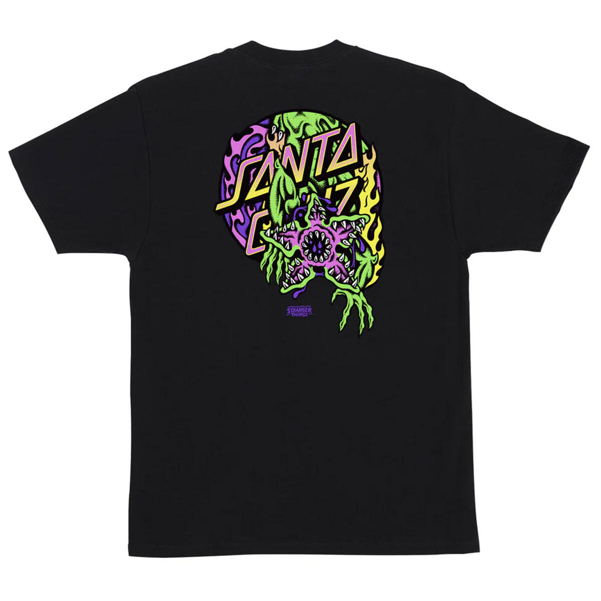 The Santa Cruz Stranger Things Demogorgon Dot men's short sleeve regular fit t-shirt features small front and large back Santa Cruz x Stranger Things Demogorgon Dot artwork printed in soft hand ink.