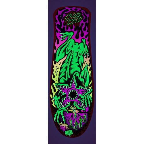 The Santa Cruz Salba Demogorgon 10.3in x 31.1in deck features multicolor glow in the dark graphics on fully dipped orange deck in Steve Alba's OG Tiger shape. This deck also features adjustable 14.5-15" wheelbase.