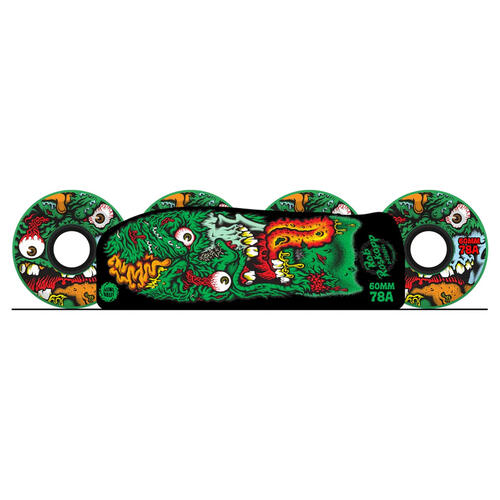 Slime Balls Reissue Roskopp Face Two Green OG Slime 60mm , 78a Slime Balls Wheels in green 78a soft urethane with black core featuring legendary Santa Cruz Rob Roskopp Face Two graphics.