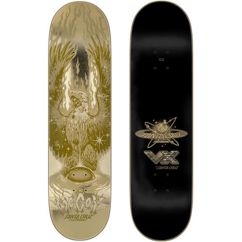 The Santa Cruz Skateboards McCoy Cosmic Eagle VX Twin Pro deck features Maurio's custom, symmetrical twin shape, VX deck construction, 14.22" wheelbase and metallic gold McCoy Cosmic Eagle graphics.