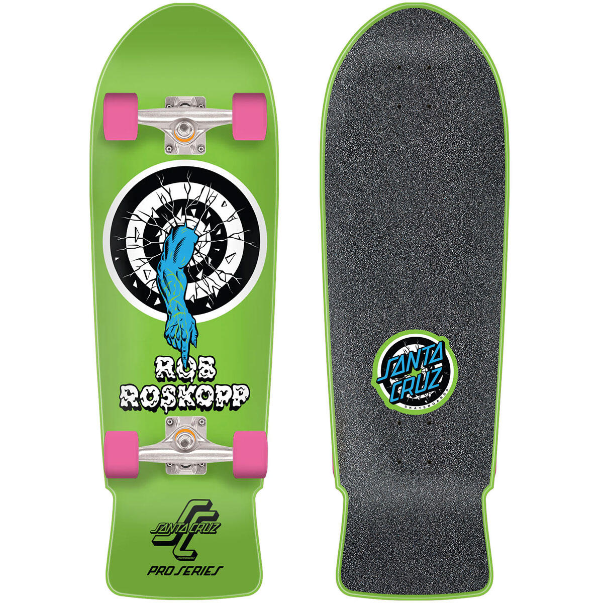 The Santa Cruz Skateboards Roskopp One Shaped Cruzer is ready to rip and features legendary OG Roskopp One graphics, shape and concave. This cruiser also comes with high quality Independent 169 Stage 11 trucks, Slime Ball 60mm, 78a wheels and Abec 3 Bearings.