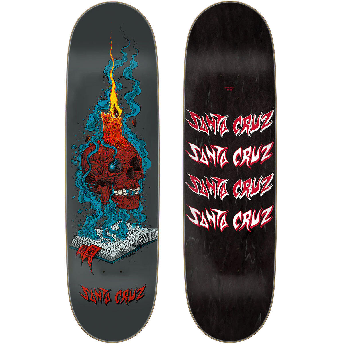 The Santa Cruz Skateboards Pace Necromancer Pro 7 ply deck features Rob Pace's 8.7" shape, 14" wheelbase, Santa Cruz Pace Necromancer artwork printed on gloss grey deck bottom and Santa Cruz Necromancer art on black deck top.