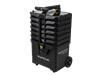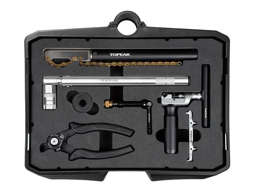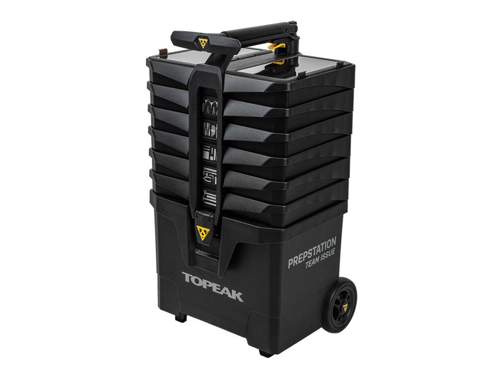 A highly mobile trolley tool station with 5� wheels for ease of use. The 7 tool compartments contain 48 professional-grade bike tools. For better stability, the wheelbase can easily be pulled out to extend the footprint. The push-button lift handle opens tool trays for quick and easy repairs.