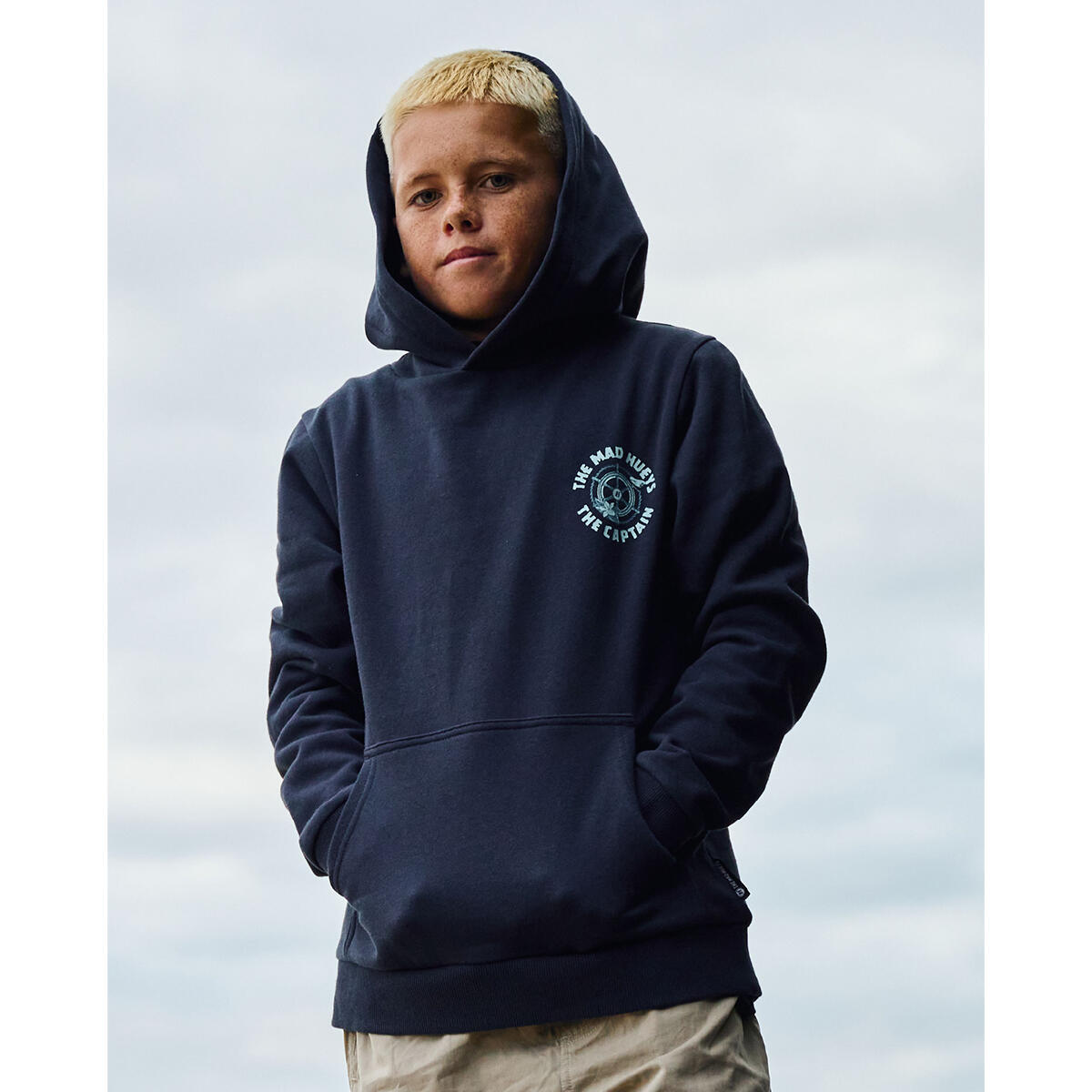 Mad Hueys Captain Two Faced | Youth Hooded Pullover Navy