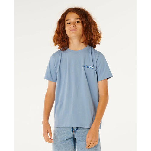 Embroidery and mixed print details make the Eternal Shred Logo Tee - Kids a standout, finished with front-and-back graphics for a surf-inspired look.
