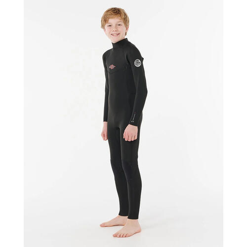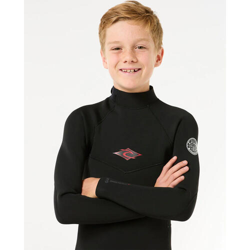Tackle colder surf with the Kids Dawn Patrol 4/3 Back Zip Steamer, equipped with 4x3mm E5 neoprene for warmth, recycled internal lining for sustainability, and sealed seams to keep water out during epic sessions.