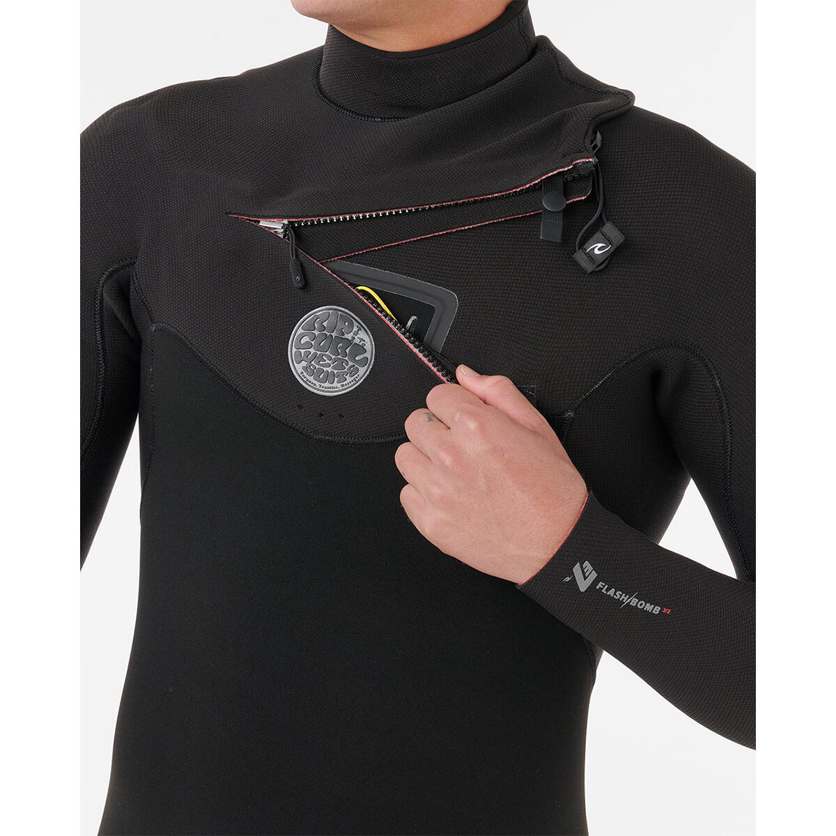 The Flashbomb 3/2 Chest Zip Fullsuit Wetsuit offers 4x3 mm thickness for excellent warmth and flexibility. Constructed from 80% neoprene and 20% polyamide with Fusion Hybrid technology, it features E7 and E6 flash linings, mesh skin panels, sealed cuffs, an internal key pocket, and advanced 3/4 Fusion dry seam technology for enhanced durability and comfort.