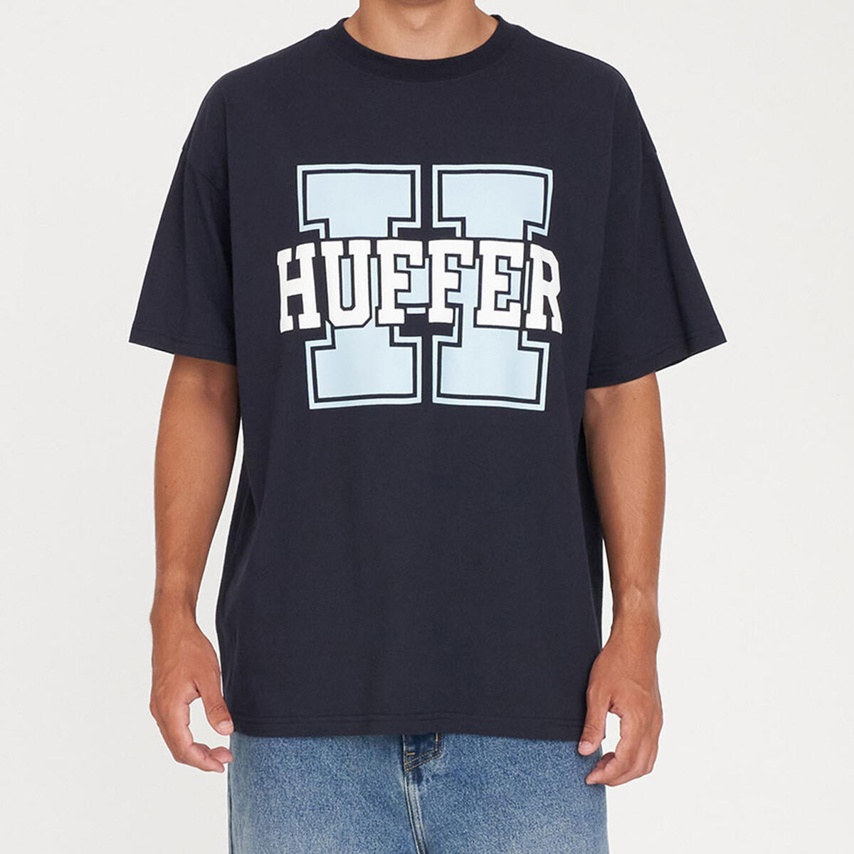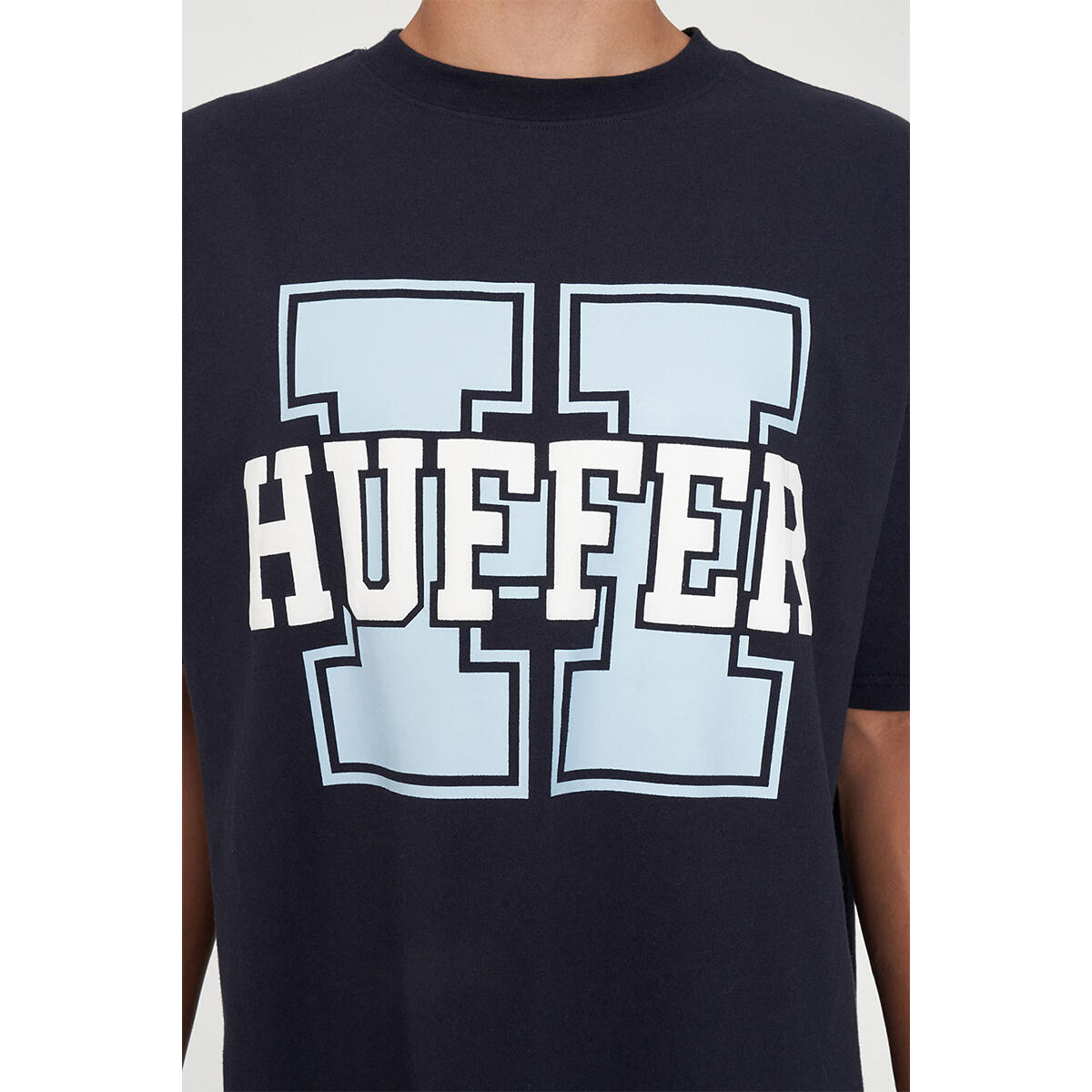 What you need to know: 100% Cotton, 220gsm, 25mm Neck rib, Premium weight jersey, Boxy fit, Short sleeve, Huffer branded placement screenprint