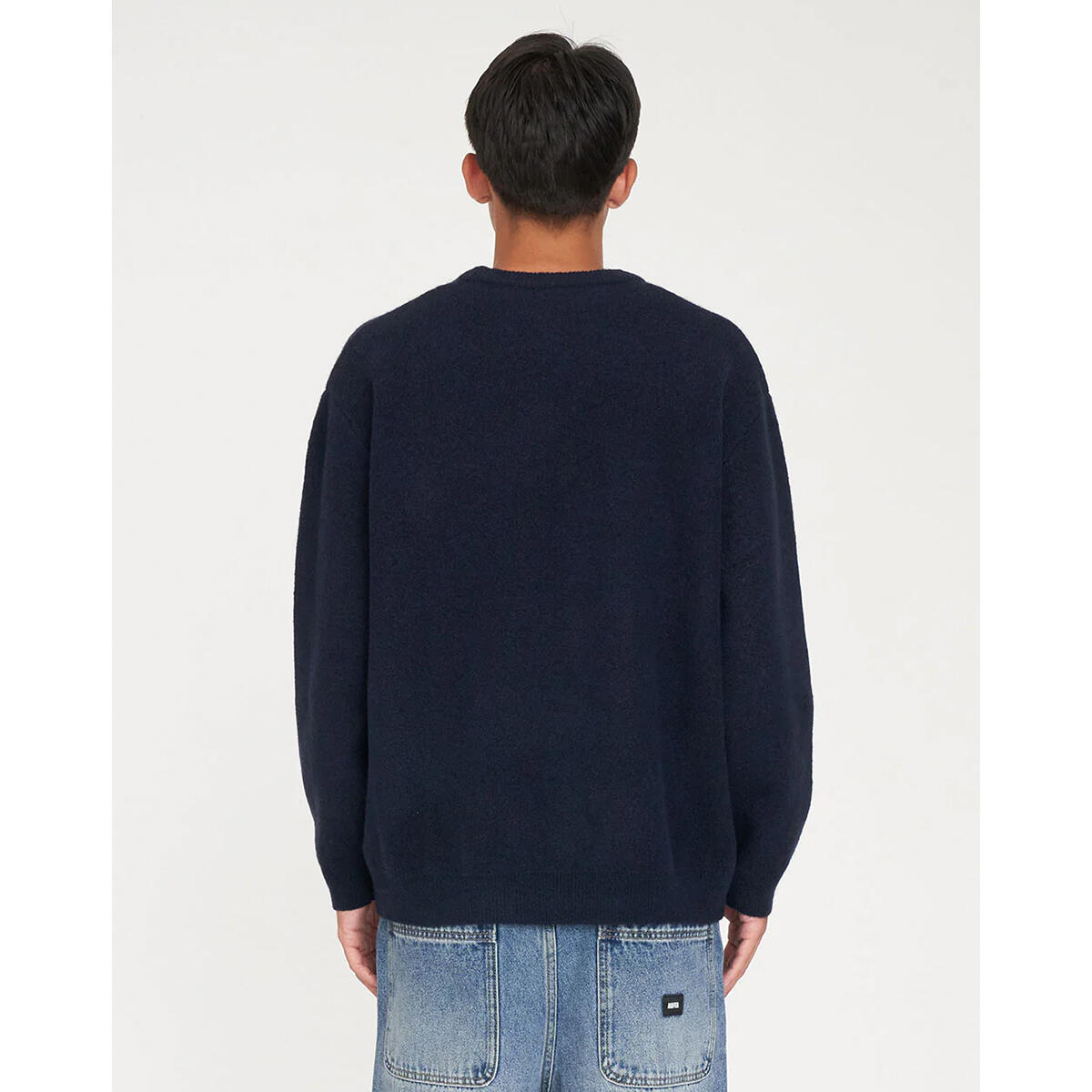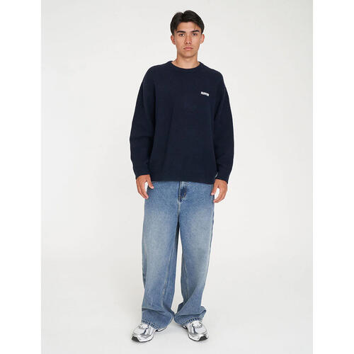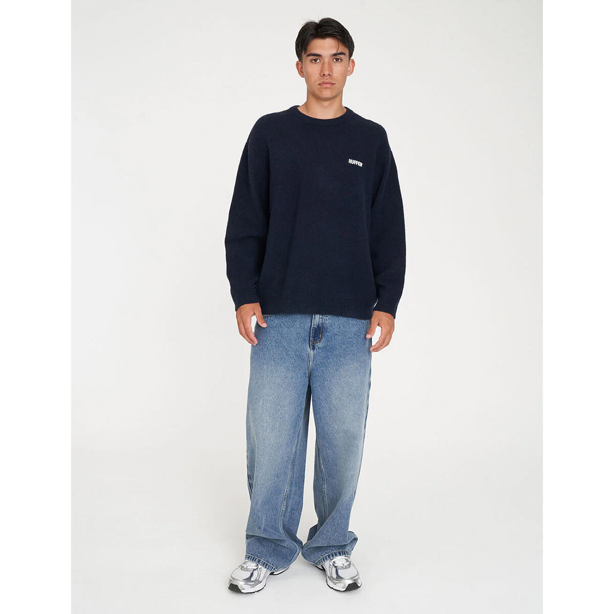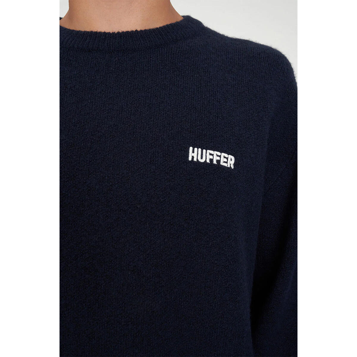 • What you need to know: 68% Acrylic 12% Polyester 11% Nylon 6% Wool 3% Spandex, Fully fashioned knit, Jersey stitch, Relaxed streetwear fit, Crew neck, Rib sleeve cuff and hem, Huffer placement embroidery