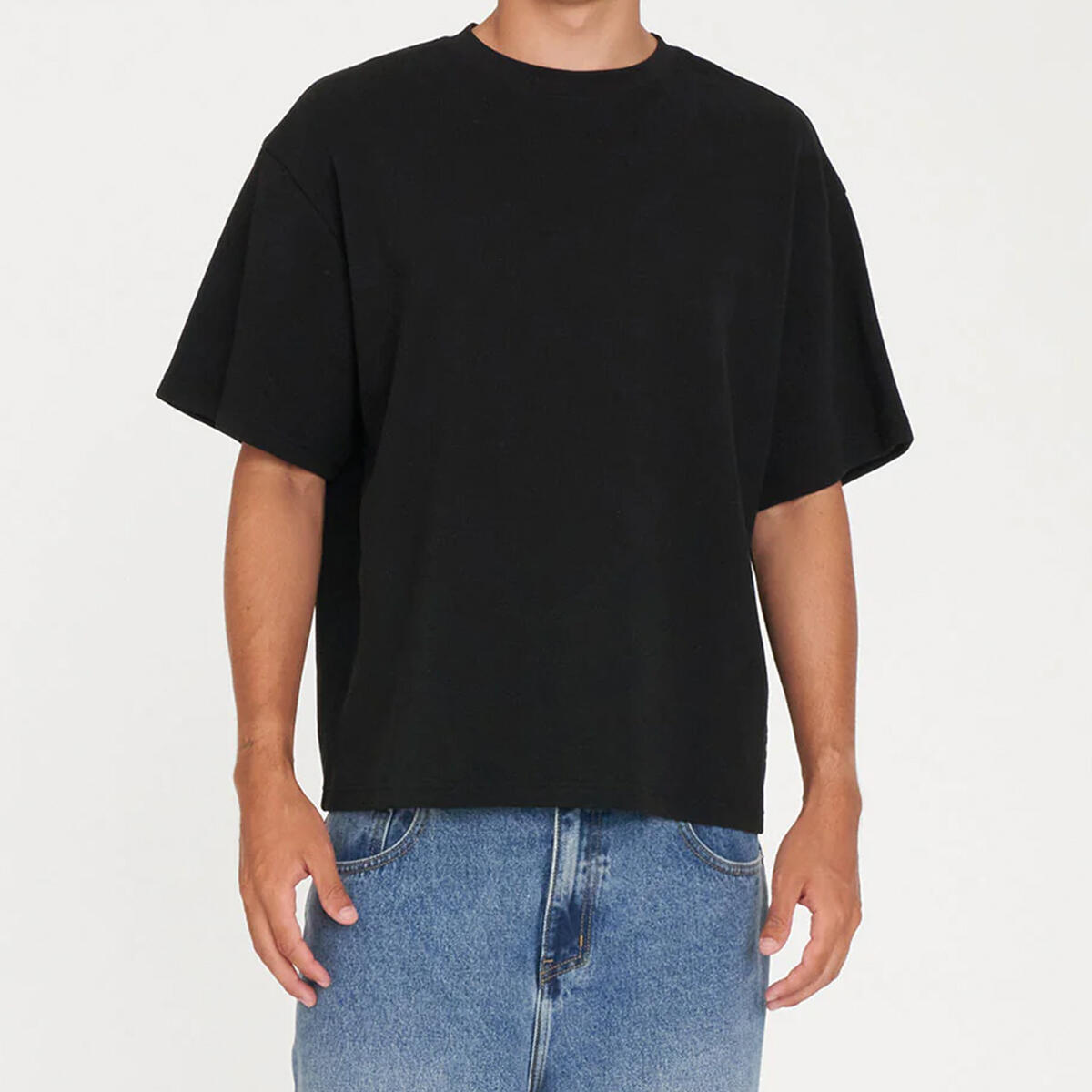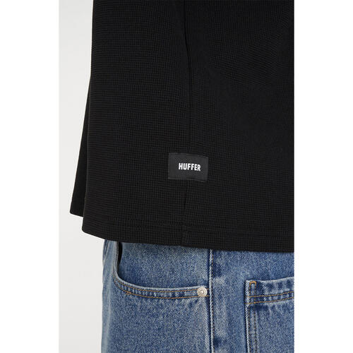 • What you need to know: 100% Cotton, 320gsm, Mid weight waffle knit, 20mm Neck rib, Custom Huffer colour, Cropped classic fit, Short sleeve, Huffer woven label branding