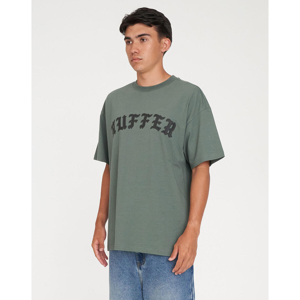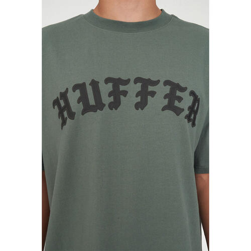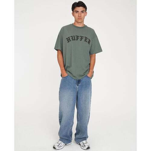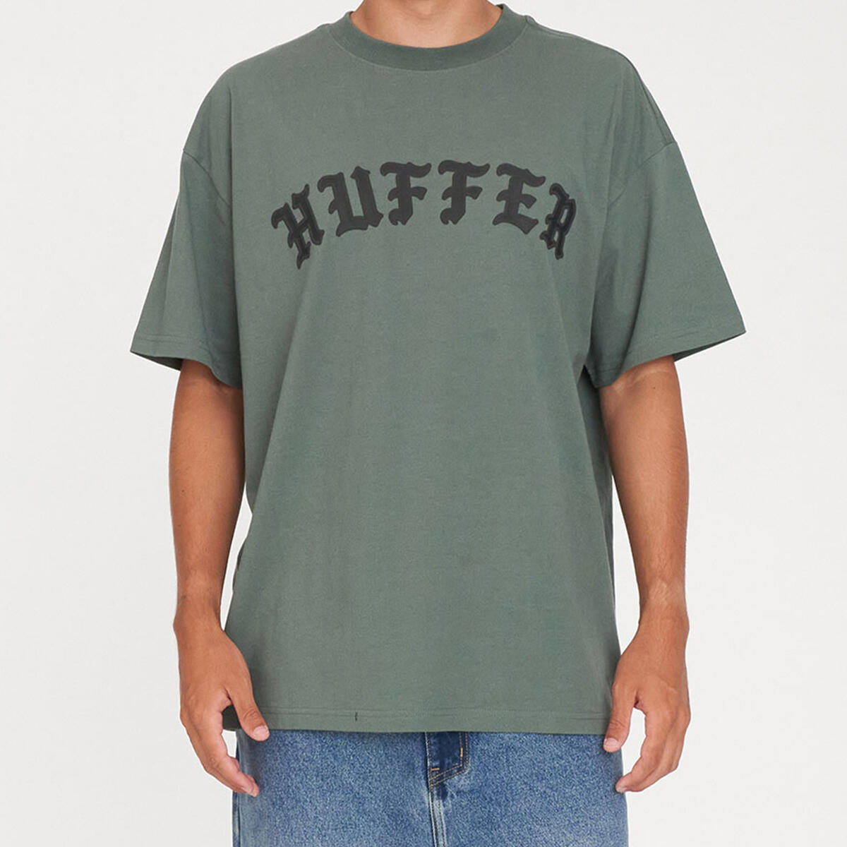 What you need to know: 100% Cotton, 220gsm, 25mm Neck rib, Premium weight jersey, Boxy fit, Short sleeve, Huffer branded placement screenprint