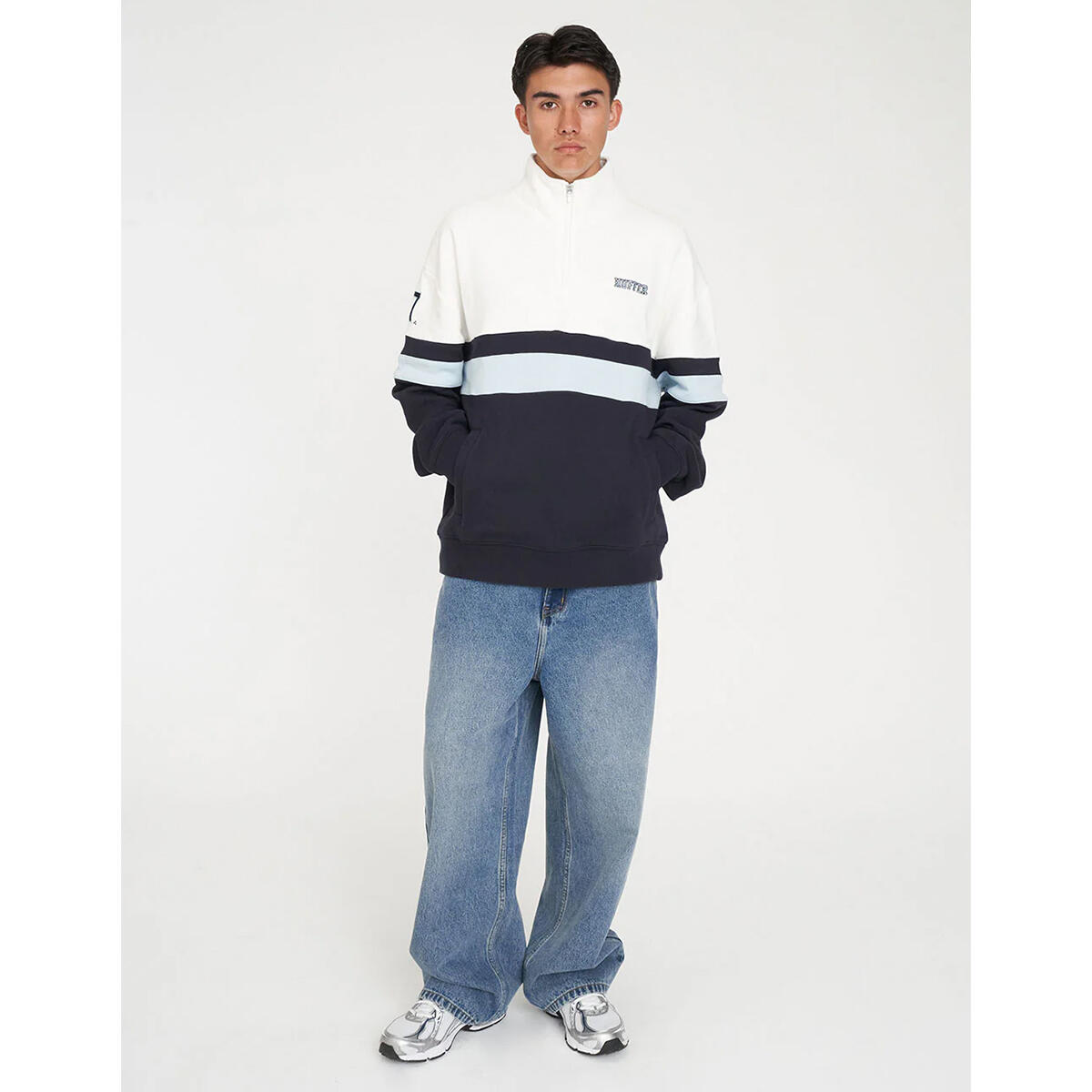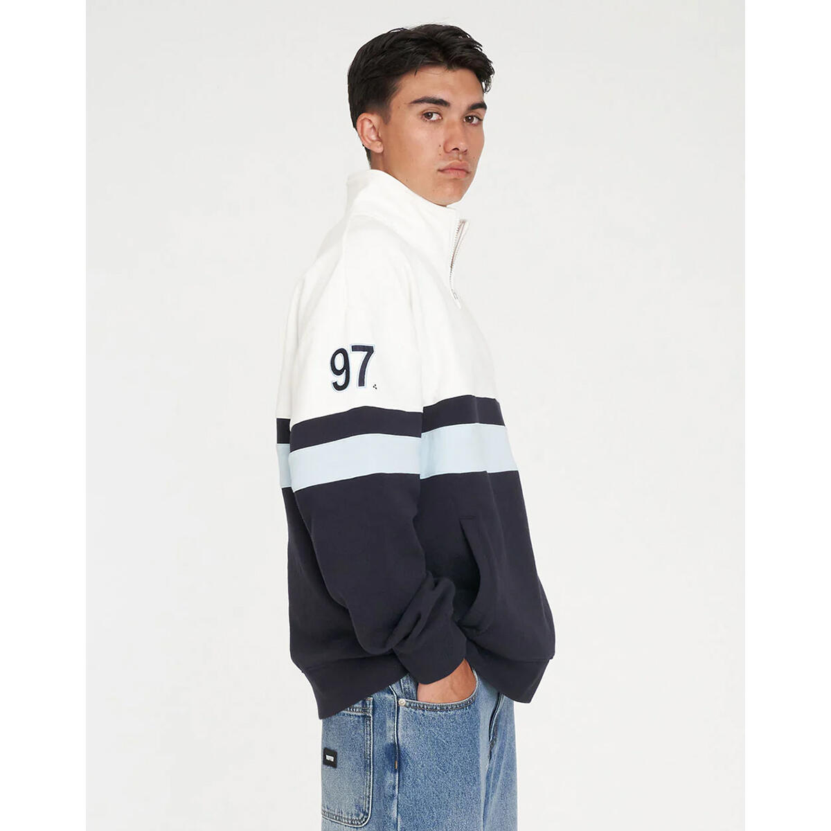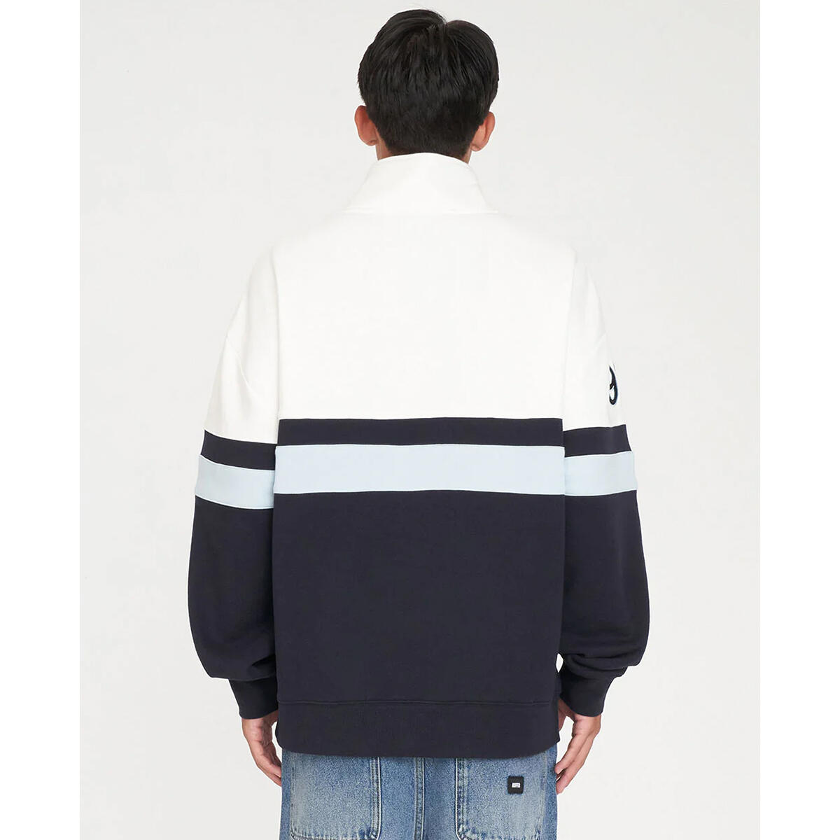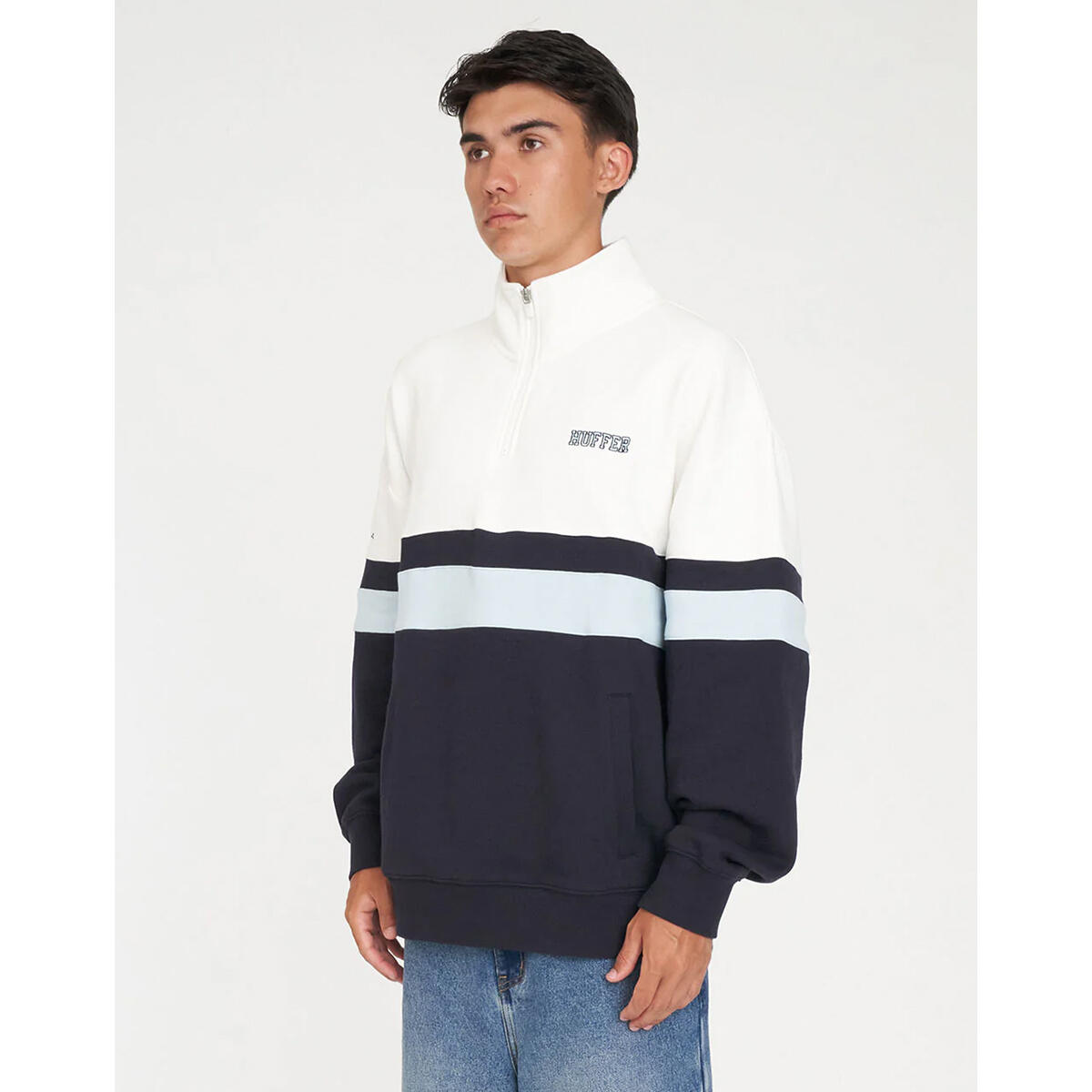 • What you need to know: 100% Cotton, 350gsm, Mid-weight brushback fleece, High neck with zip opening, Boxy fit, Huffer branded placement embroidery