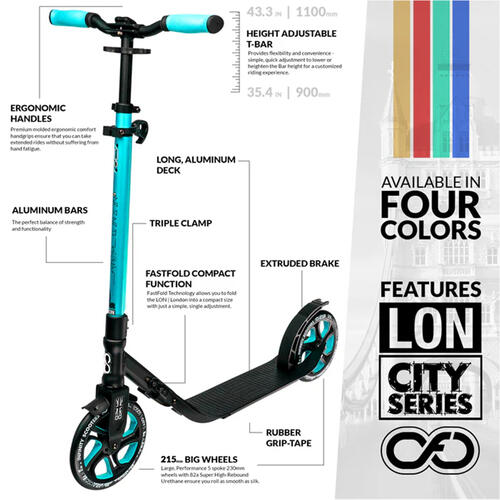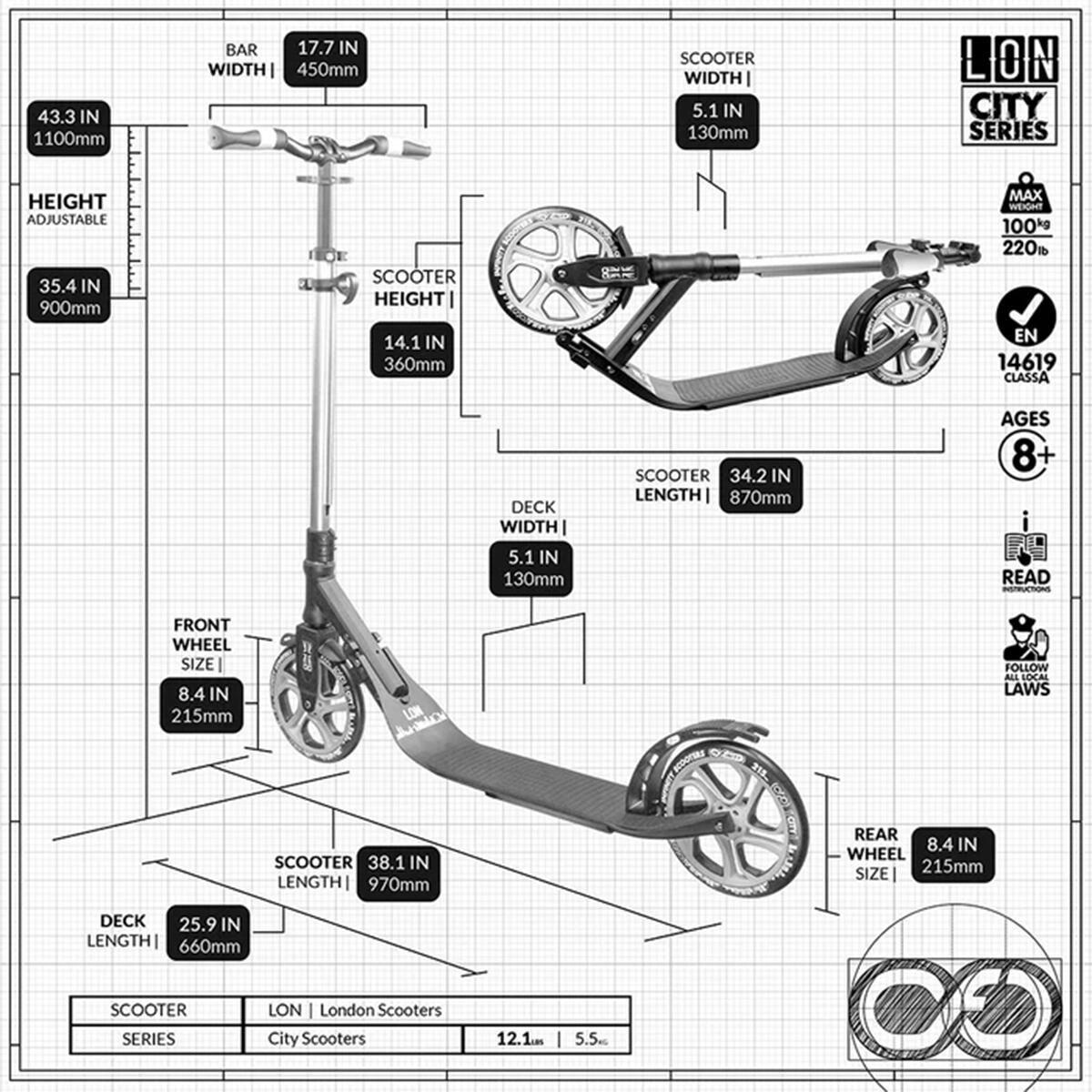 So get ready to experience the revolution in urban commuting with the London City Series Scooter from Infinity Scooters. We've got remarkable features, sleek design, and unparalleled convenience all rolled into one epic ride. It's time to ditch the traffic, ride in style, and make your daily commute a breeze. Get on board and let the London City Series Scooter take you to new heights of urban exploration!