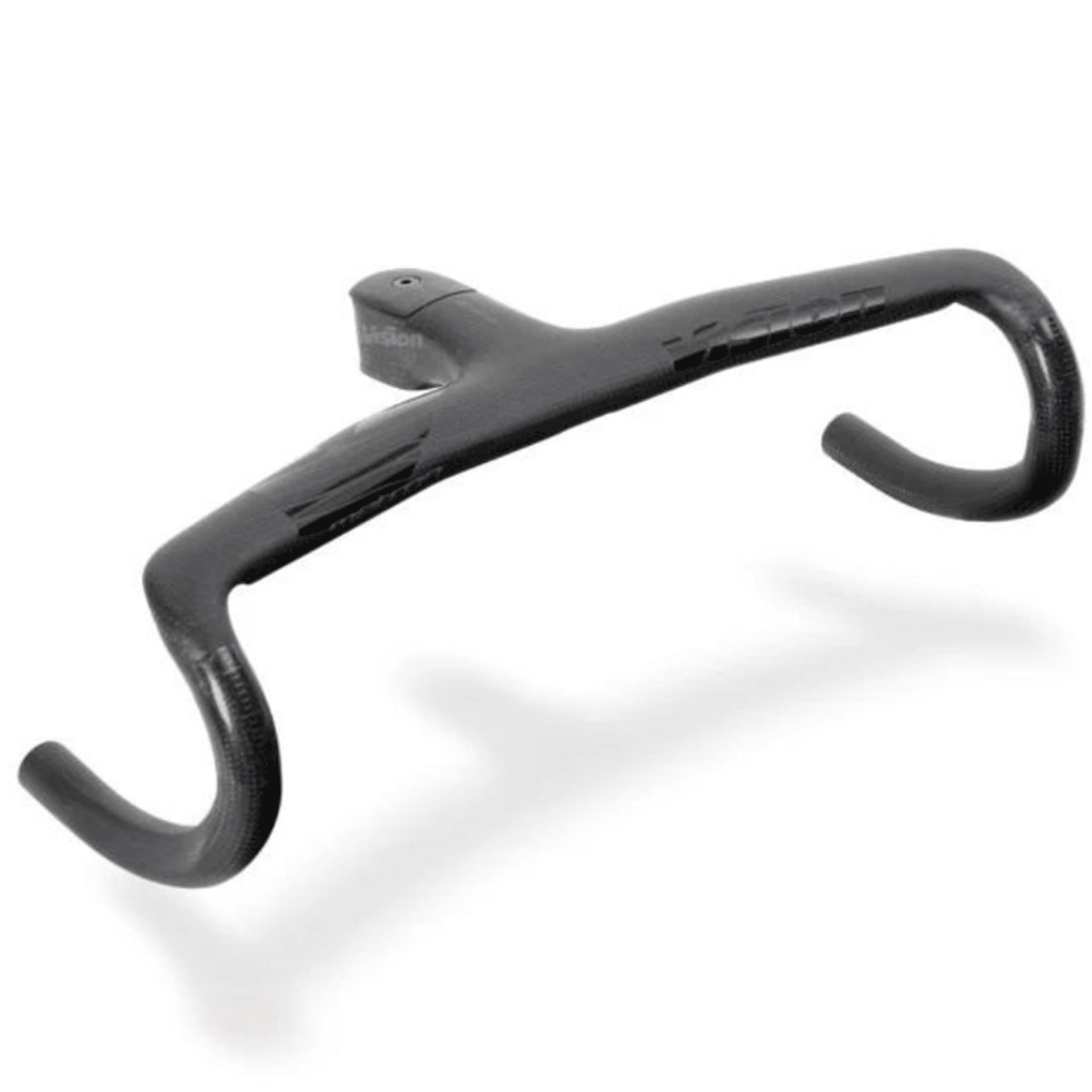 Metron 5D integrated handlebar, the stiffest and most aero integrated handlebar and stem system. Mixing aerodynamics and ergonomics, the unique shape includes our Aero-Ergo central section. With a slight rise from the stem clamp and a 10 degree forward bend, the 5D accommodates the natural position of your arms for more comfort and easier breathing, while the wing-like shape of the bar top aids aerodynamics. Reinforced carbon fiber construction gives a great strength-to-weight ratio. The 5D features internal cable routing, with guides that accommodate wiring for electronic shifting. Now available with the new ACR System, a fully integrated Aerodynamic Cable Routing solution that routes all cables, wires, and hoses internally.