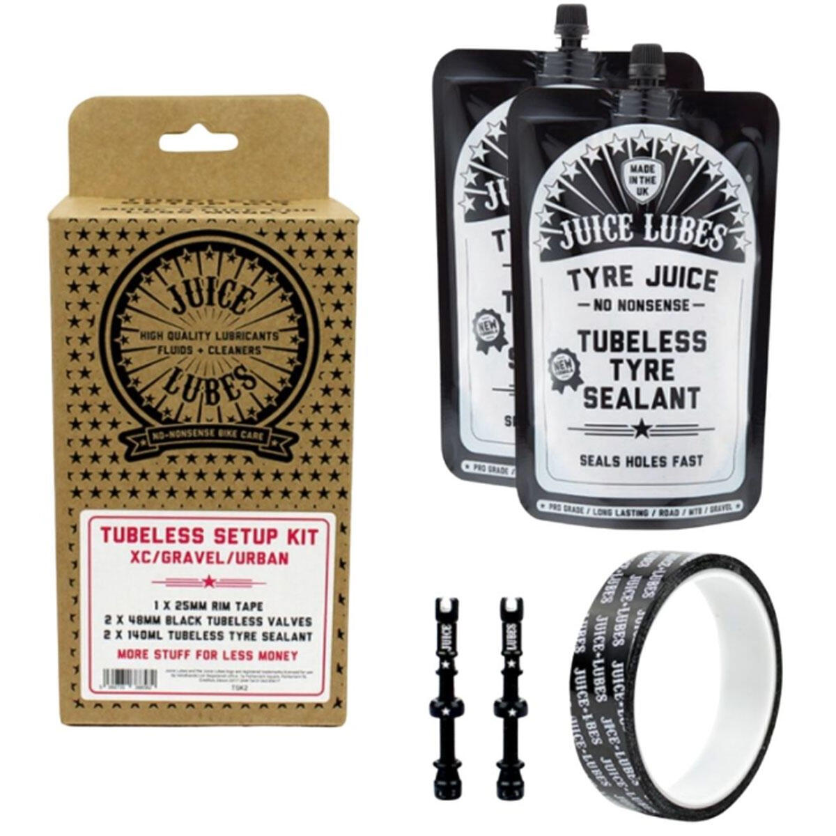 A one way ticket to the perfect Tubeless Setup. Our Tubeless Setup Kits contain everything you need to setup and maintain a tubeless-ready wheelset. Just select the right configuration for your chosen setup.