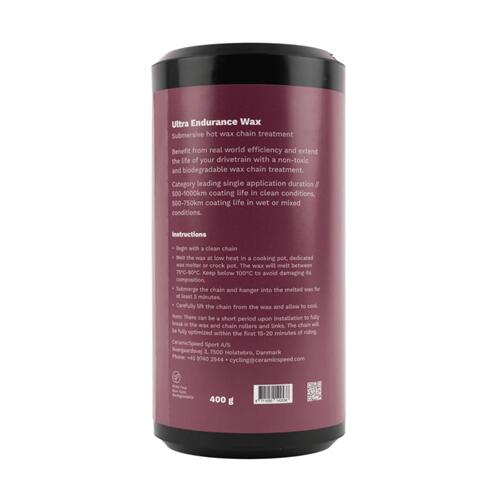 The unique formula behind our new Ultra Endurance Wax is developed by our in-house chemist and like the rest of the UFO product family it is completely bio-degradable and non-toxic. The formula has been validated through extensive lab and field testing, where some of our test riders have documented clean and quiet-running rides of 1000+ kms in changing conditions on a single application.