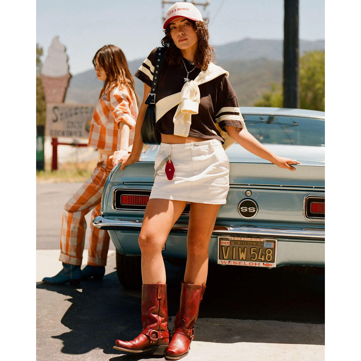 Crafted from 100% colored denim, this five-pocket mini skirt design channels vintage vibes. Rock it casually with sneakers or dress it up with heels and a crop topeither way, you'll look like one handy (and stylish) woman.
