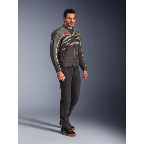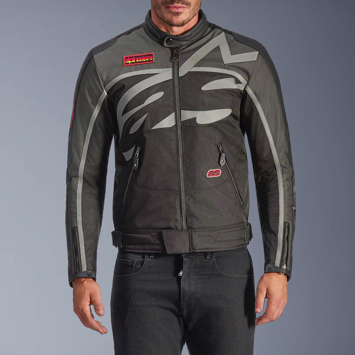 - Alpinestars Racing Heritage: A striking body-wrapped Alpinestars logo, branded patches, an embroidered wordmark, and branded zipper pullers and snaps, infuse the jacket with bold contrast and style, allowing riders to express their affinity to the brand.