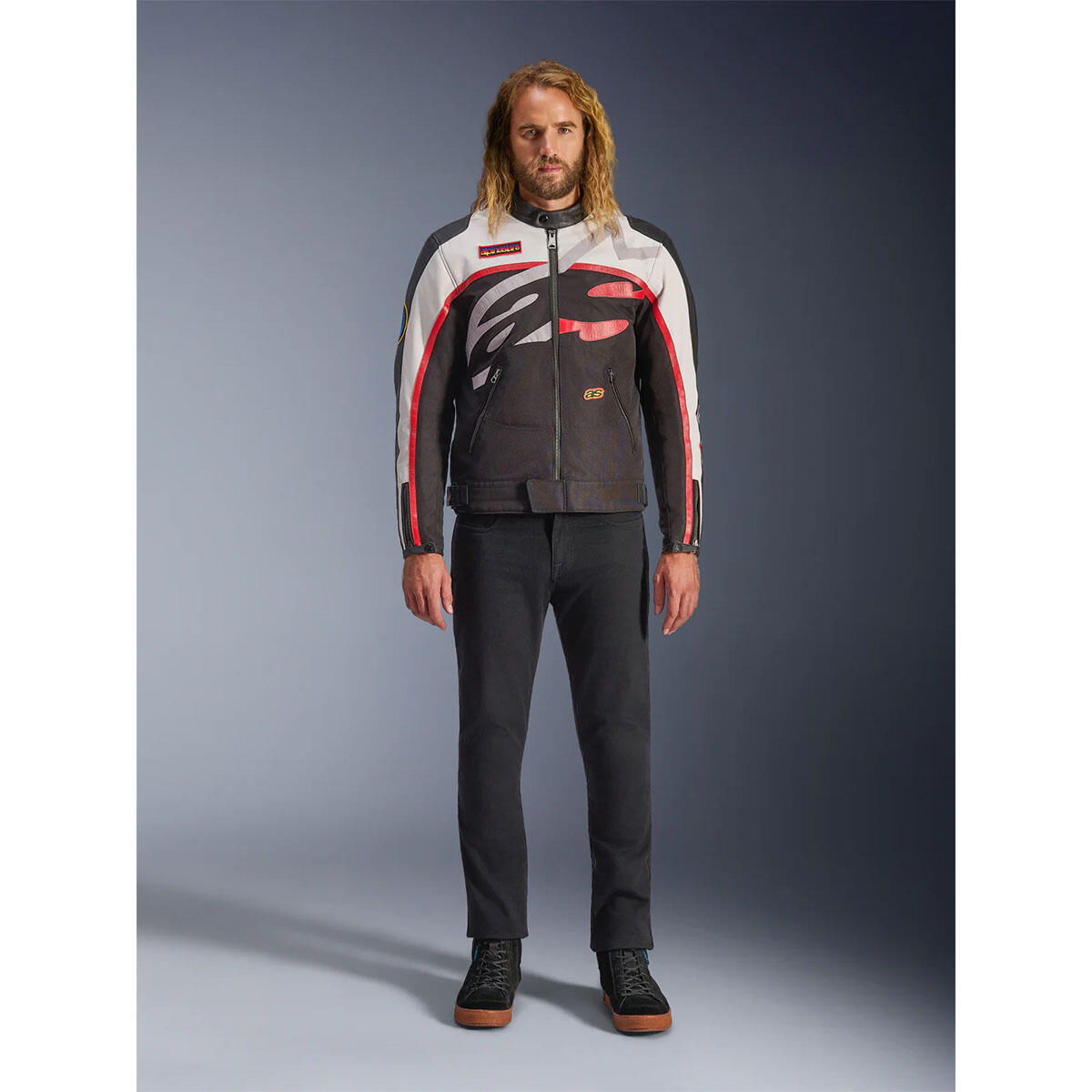 • Alpinestars Racing Heritage: A striking body-wrapped Alpinestars logo, branded patches, an embroidered wordmark, and branded zipper pullers and snaps, infuse the jacket with bold contrast and style, allowing riders to express their affinity to the brand.