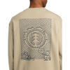 This pullover sweatshirt is made from a blend of 50% recycled cotton, 30% cotton, and 20% recycled polyester, with a weight of 400 g/m2. It has a relaxed fit with a crew neck and long sleeves, and a pullover closure. The branding includes prints on the chest and back, as well as a corporate flag label on the inseam. Please note that product appearance may vary slightly depending on print placement and there is a GRS Recycled Cotton label to show its sustainability.