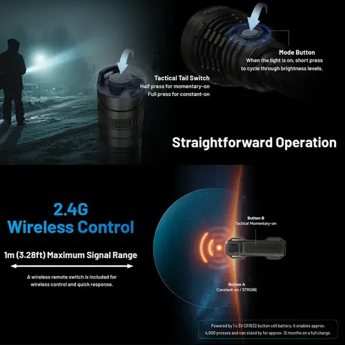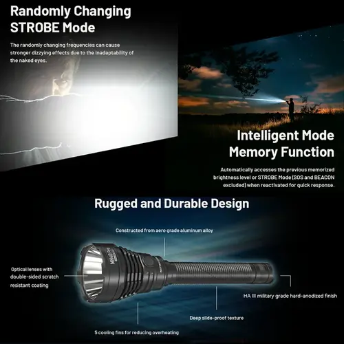 Provides a max beam intensity of 423,000cd, ideal for search, patrolling, caving, SAR (search and rescue). Law enforcement and more.