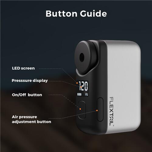 TINY BIKE PUMP PRO features a high-definition LED screen that displays the barometric pressure value, adjustable units and remaining battery life in real time, making everything crystal clear.  It also supports preset target pressure values (PSI / BAR switchable), and it will automatically stop once the target pressure is reached during use for optimal safety and performance.