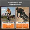 Inflates tires from 0 PSI to 80 PSI (up to 120 PSI) in just 50 seconds, helping you solve your inflation challenges quickly. Fills up to four 700 X 25C tires on a full charge.