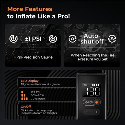 With the product's LED digital display screen and many thoughtful features, you can control tire pressure more accurately and enjoy a more professional and easier inflation experience.