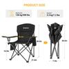 • OVERSIZE: Supports up to 135kgs. Seat height is 43cm. Width is 97cm. These heavy duty camping chairs are large enough for big and tall people. A Padded seat, back support and armrests provide real comfort. With a cup holder and a cooler, relax with drinks and snacks. And includes Side storage pockets for. This Twin pack means you are your camping buddy can enjoy leisure time together.