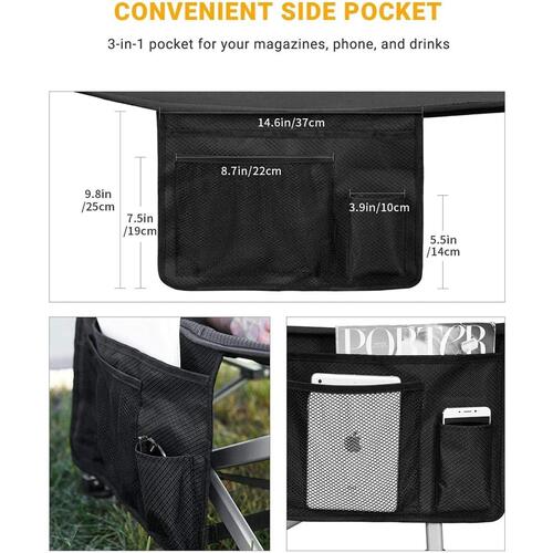 3 in 1 pocket. This camping cot with side pocket, which can store smartphones, magazines, keys, and other personal items. Ideal for outdoor camping, hunting, as a guest bed at home, fit for taking a rest at office. Great use for park, beach, backyard, garden, campsite, pace-saving option for tent sleeping.Use as a sleeping option for houseguests and sleepovers.